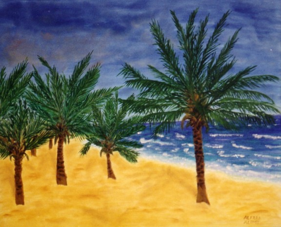 Palmen am Strand; Material: Öl auf Leinen/Karton: Fertigstellung: 1992; Größe: 50 x 40; Preis: VERKAUFT