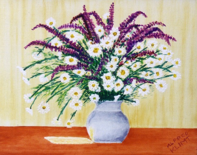 Wiesenblumen in Vase; Material: Öl auf Leinen/Karton; Größe: 30 x 24 cm; Fertigstellung: 1992; Preis: auf Anfrage