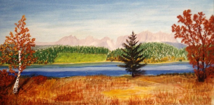 Schwarzsee / Wilder Kaiser; Material: Öl auf Leinen/Karton; Größe: 50 x 25; Fertigstellung: 1991; Preis: auf Anfrage