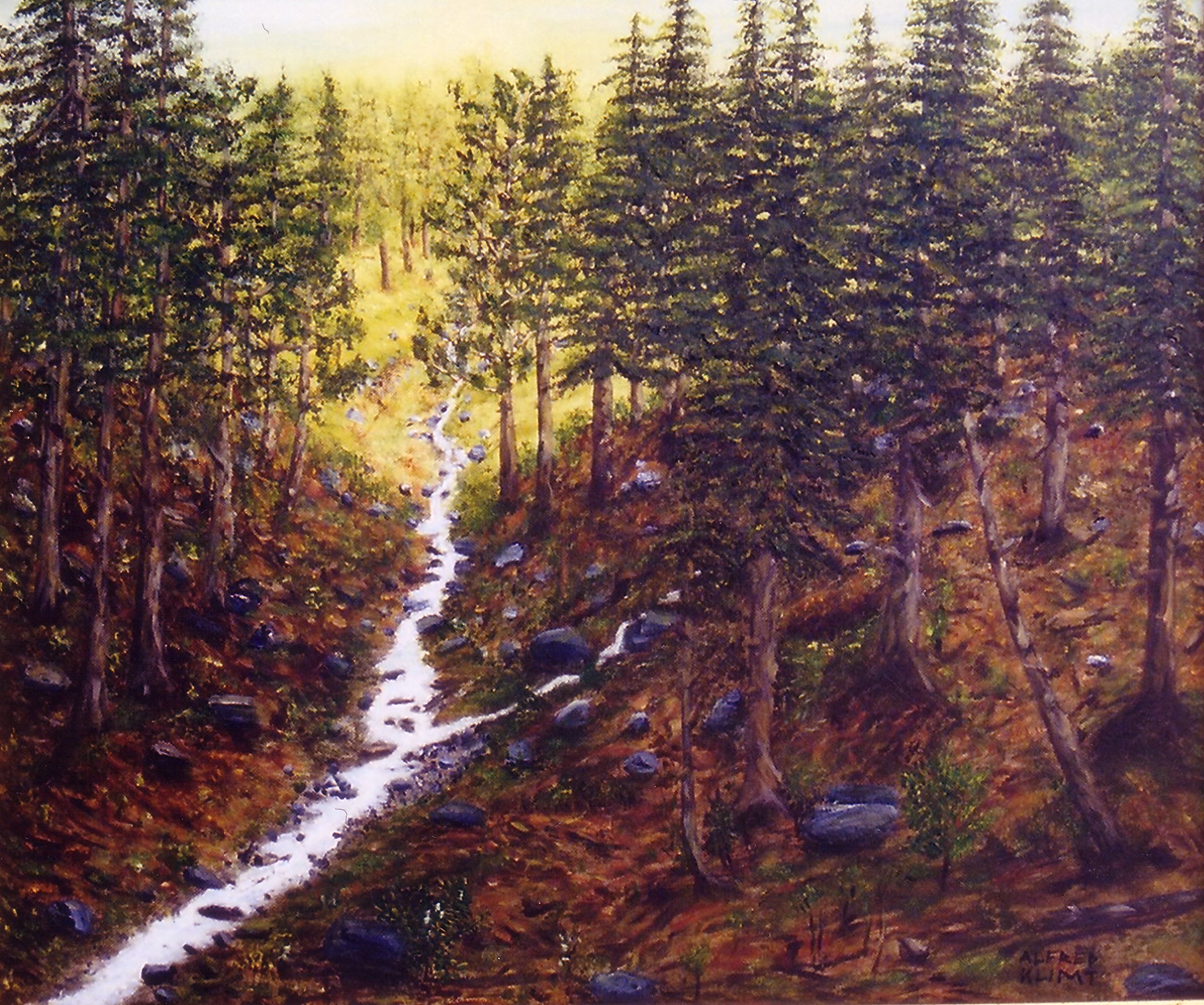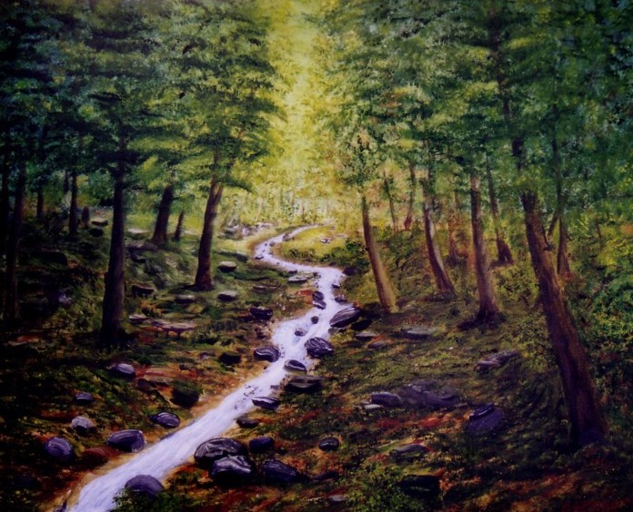Waldbächlein; Material: Öl auf Leinen; Größe: 60 x 50 cm; Fertigstellung: 2003; Preis: VERKAUFT