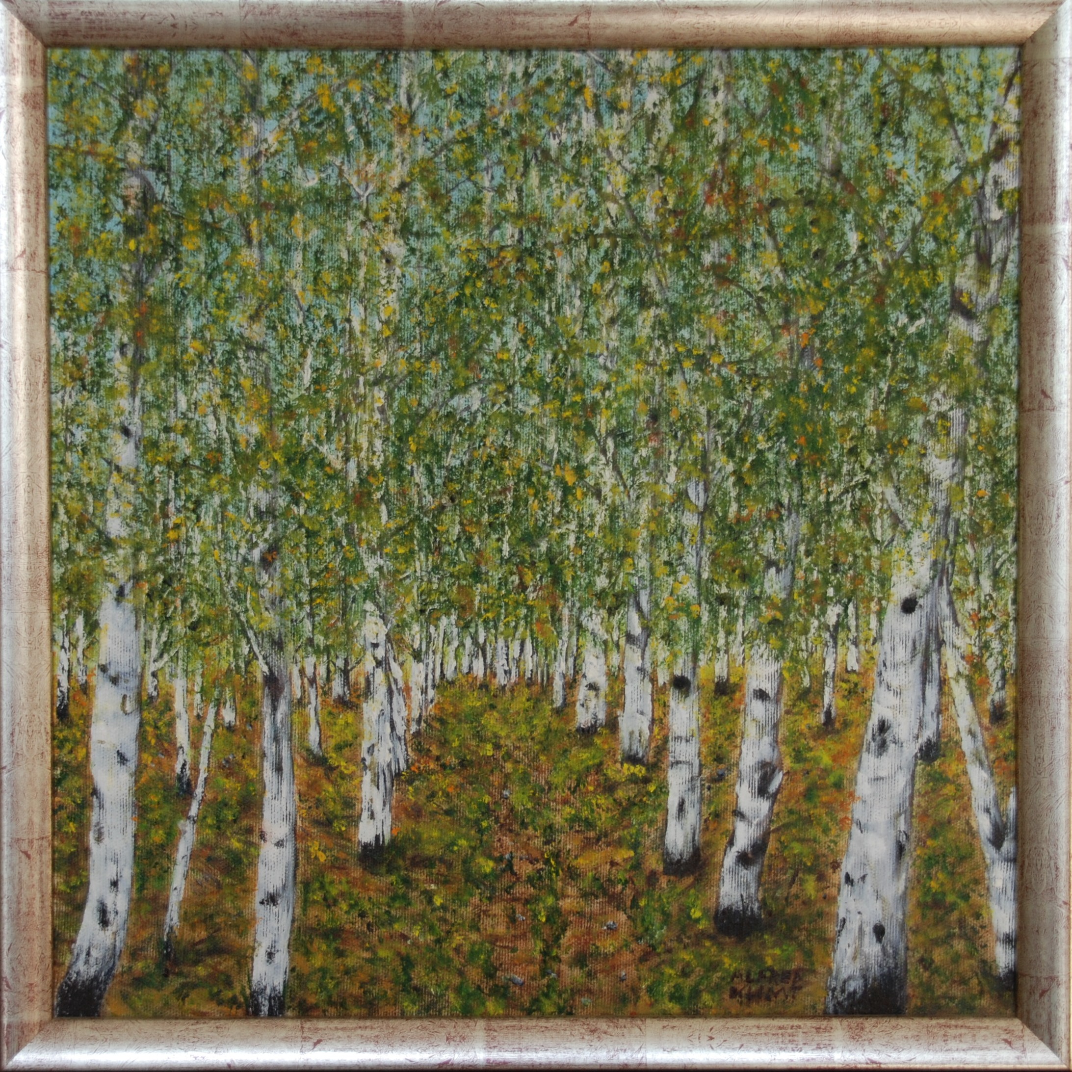 Birkenwald; Material: Öl auf Leinen; Größe: 40 x 40 cm; Fertigstellung: 2004; Preis: auf Anfrage