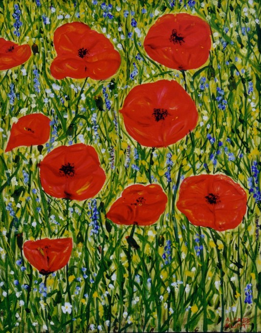 Mohnblumen; Material: Öl auf Leinen; Größe: 40 x 50 cm; Fertigstellung: 2001; Preis: auf Anfrage