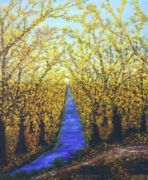 Krotenlacke im Herbst; Material: Öl auf Leinen; Größe: 40 x 50 cm; Fertigstellung: 2003; Preis: VERKAUFT