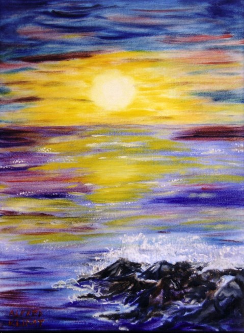 Meer Abendstimmung; Material: Öl auf Leinen/Karton; Größe: 30 x 40 cm; Fertigstellung: 2002; Preis: auf Anfrage