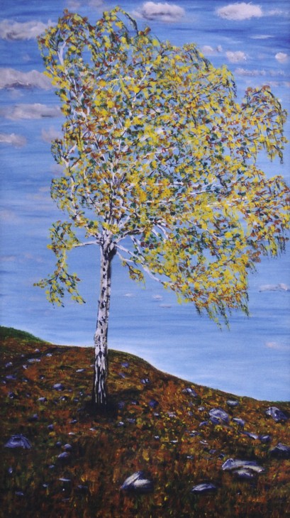 Herbstliche Birke; Material: Öl auf Leinen; Größe: 40 x 70 cm; Fertigstellung: 2003; Preis: auf Anfrage