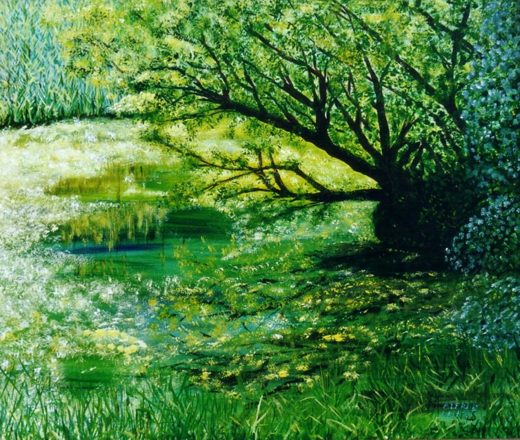 Sommer in der Au; Material: Öl auf Leinen; Größe: 60 x 40 cm; Fertigstellung: 2001; Preis: auf Anfrage